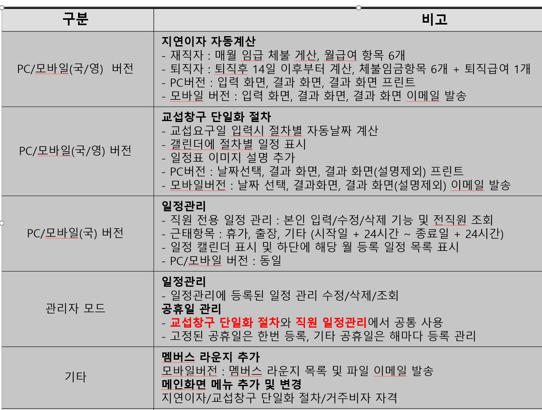앱 개발 – 지연이자 자동계산, 교섭창구 단일화 일자 자동계산, 강남노무법인 일정표 작성, 등 앱 자동화 계산 수식에 대해 발주함. |